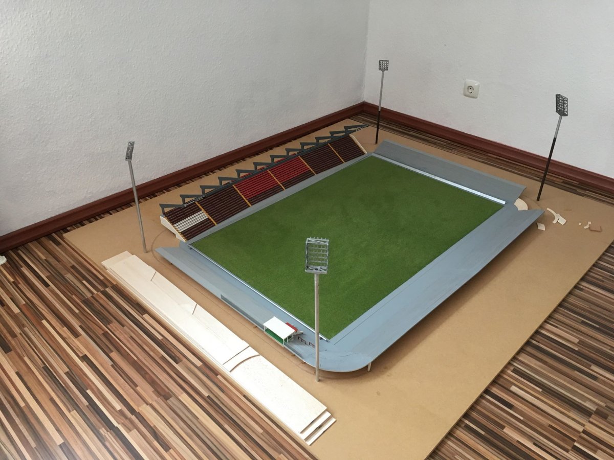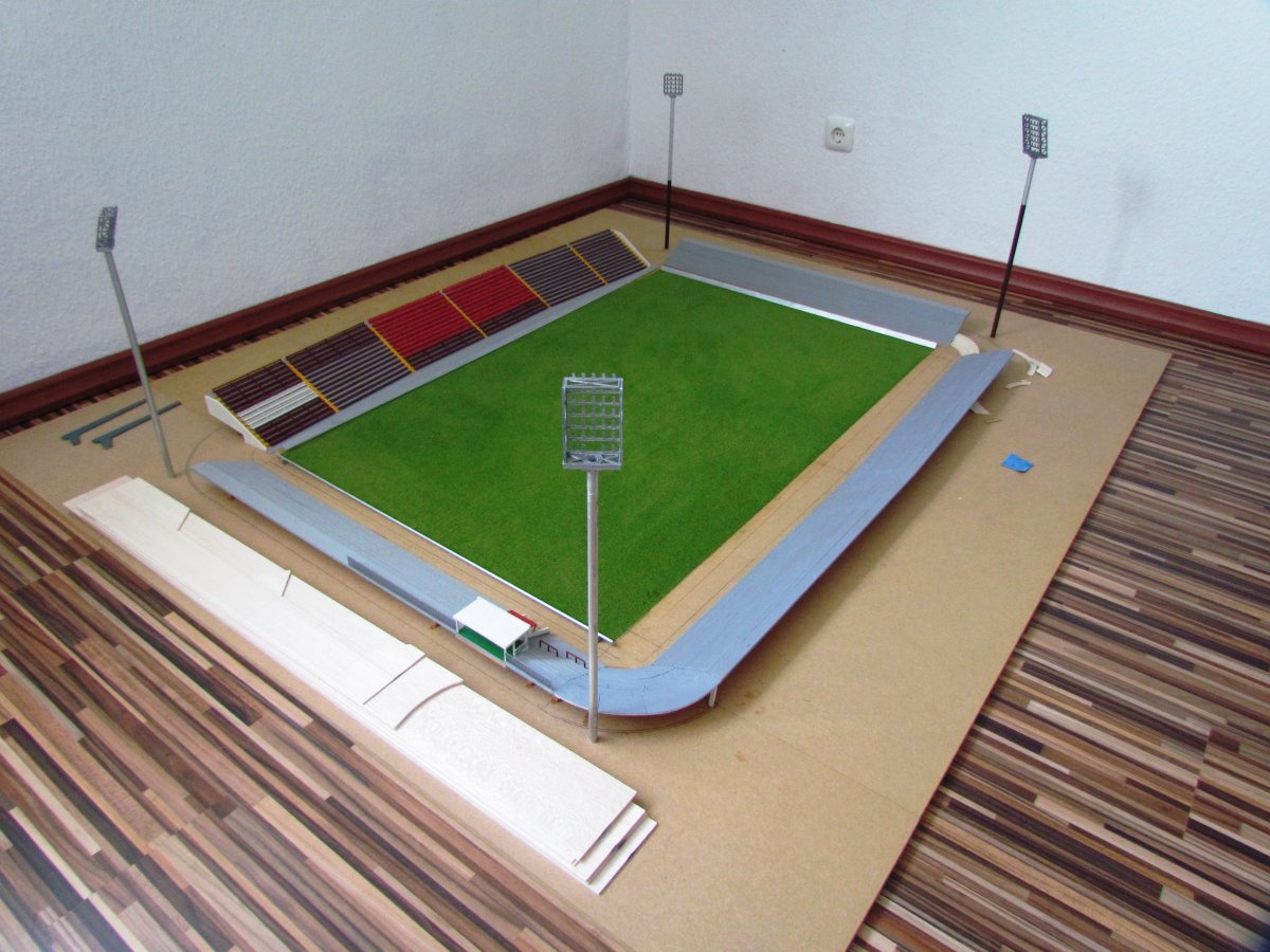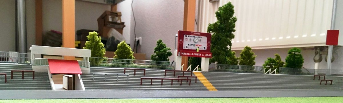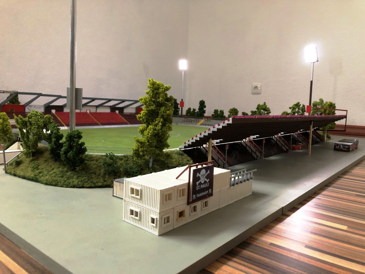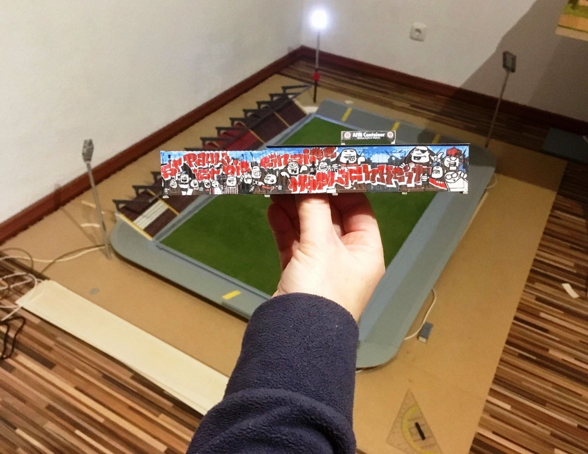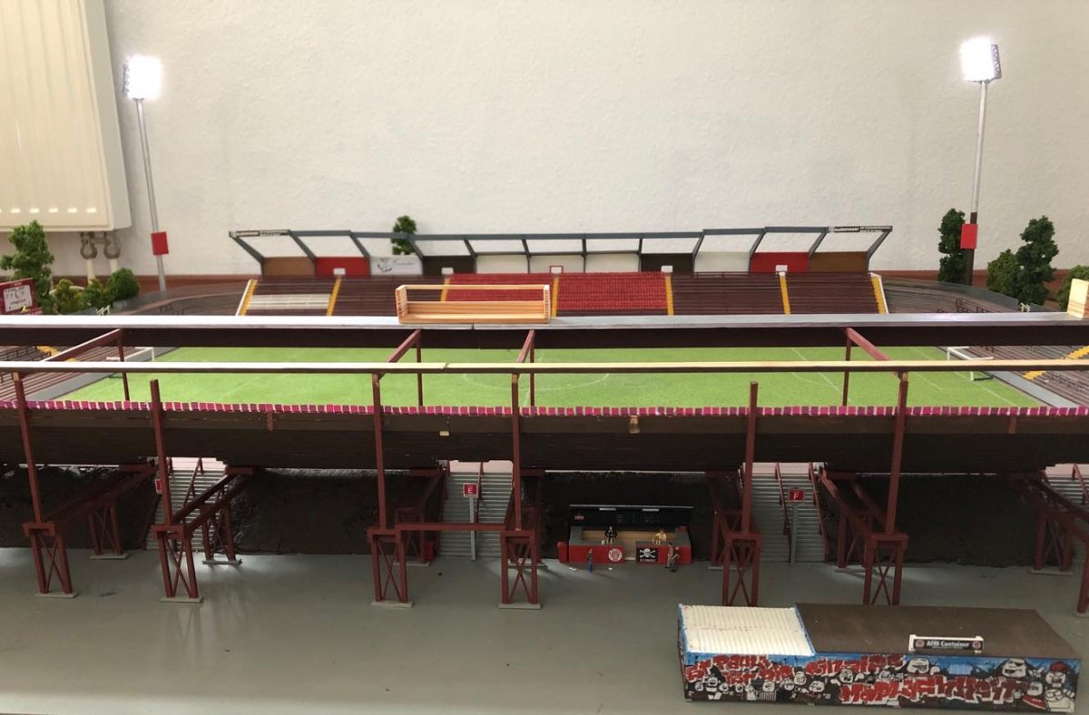 Hier entsteht nach und nach das Modell vom alten Millerntor – Stadion.