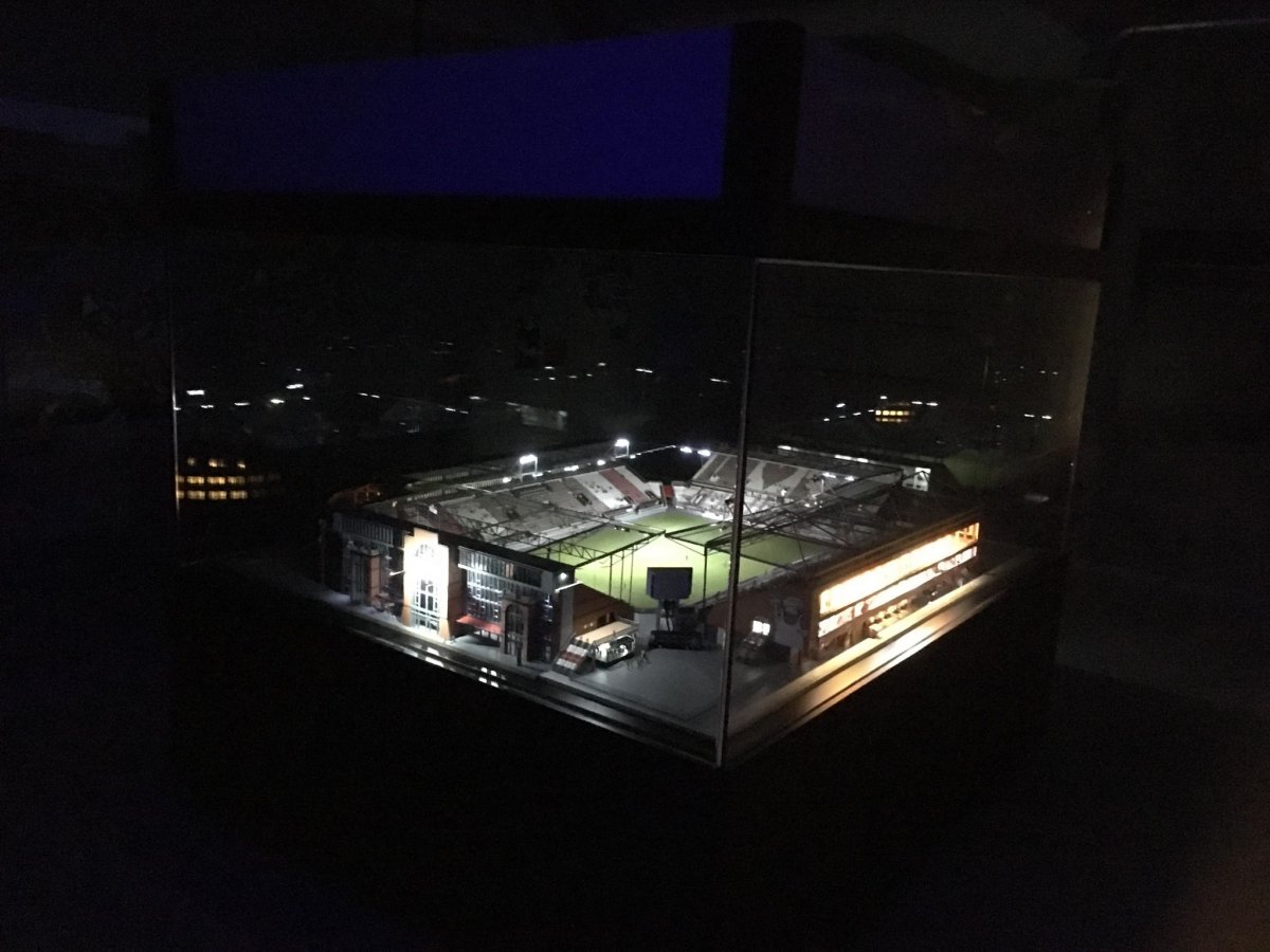 Seit dem 29.04.2017 befindet sich das Millerntormodell an seinem Bestimmungsort im FC. Sankt Pauli Museum. Alle Stadionführungen (und das sind täglich eine ganze Menge) beginnen seit dem am Modell !