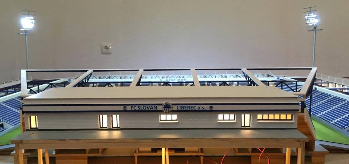 Mit unserem Heimatstadion in Liberec, dem Stadion „u Nisy“ des mehrmaligen tschechischen Meisters und Pokalsiegers FC Slovan Liberec hat vor 17 Jahren unsere Stadionmodellbau-Leidenschaft begonnen und nach und nach entwickelte sich das einstige Hobby zu einer kleinen, aber feinen Firma. Wir fassten den Entschluss uns einen privaten Traum zu erfüllen und das „u Nisy“ Schritt für Schritt nach dem neuesten Stand der Modellbau-Kunst noch einmal zu bauen.