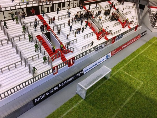 Welcher Firmeneigner hat nicht schon einmal davon geträumt sein Firmenlogo in einem Fussballstadion zu präsentieren und gleichzeitig perfekte Imagepflege zu betreiben ? Für kleine und große Unternehmen kann dieser Traum hier zur Wirklichkeit werden ! Die, die es bisher getan haben sind vom Erfolg begeistert, denn regelmäßig tauchen mit großer Reichweite Fotos mit ihren Logos und Schriften von der Ausstellung dort auf, wo sie auch gesehen werden und in der heutigen Zeit die meisten Menschen erreicht, nämlich in den sozialen Netzwerken in denen sie unzählige male geteilt werden, wie z.B. auf Facebook, Twitter u.s.w., in Foren und auf weltweiten Websites. Und das nicht nur an Spieltagen sondern täglich ! Jede Firma erhält zusätzlich ihr direkt anklickbares Firmenlogo auf unserer aus der ganzen Welt gut besuchten Website in unserer Sponsorenleiste.