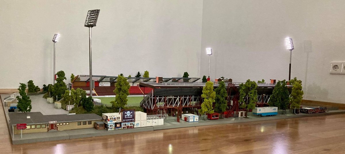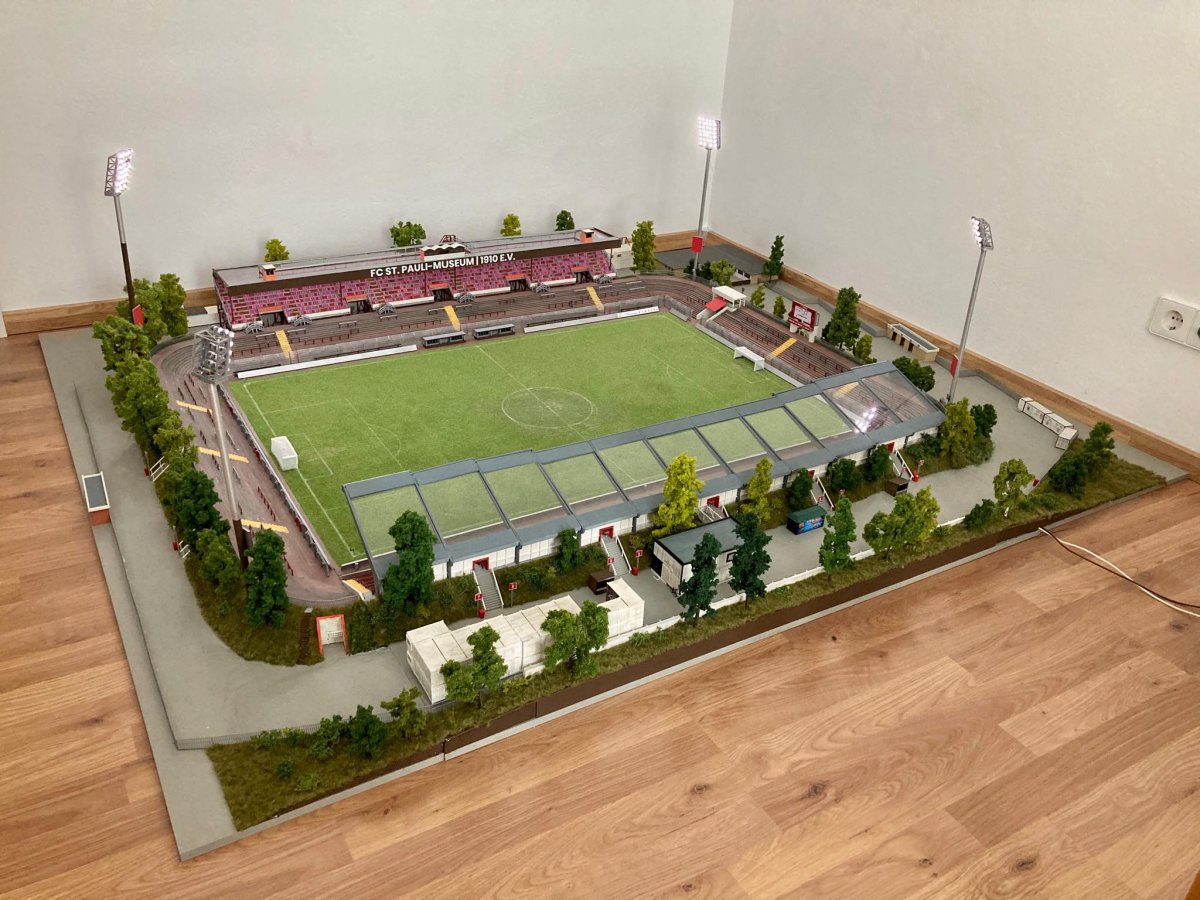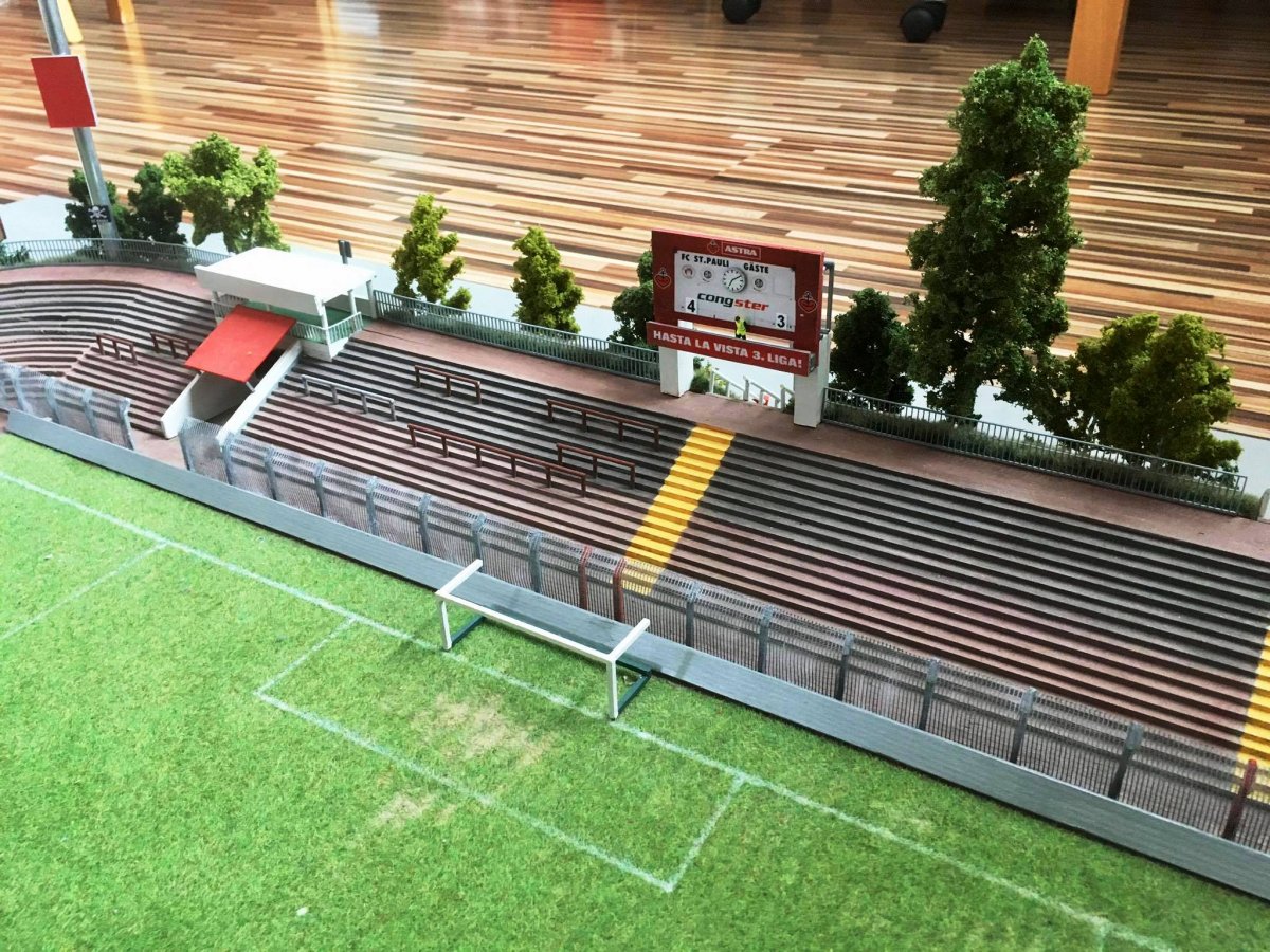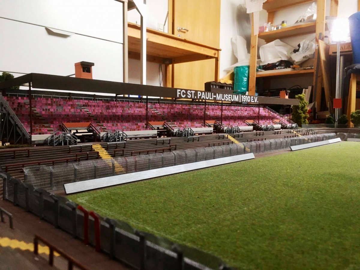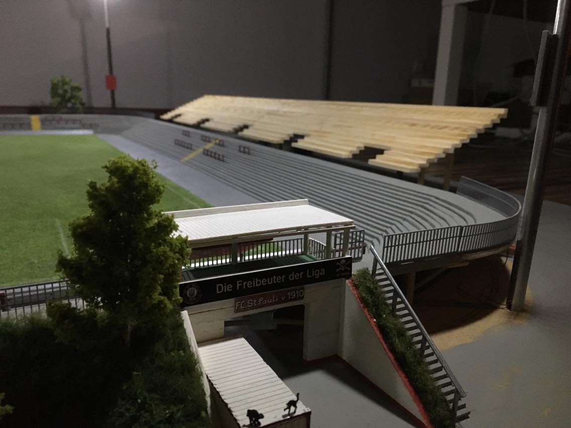 Hier entsteht nach und nach das Modell vom alten Millerntor – Stadion.