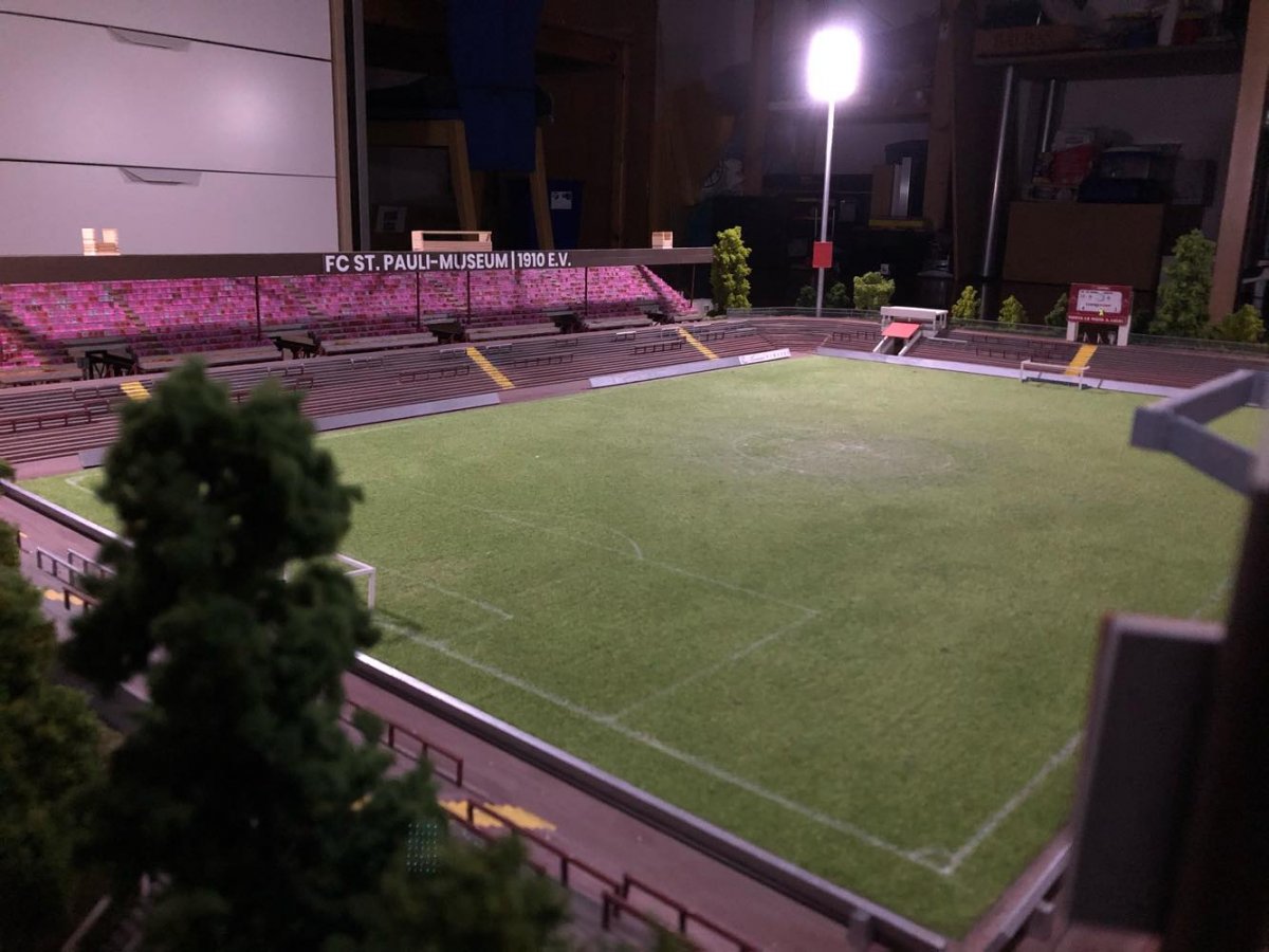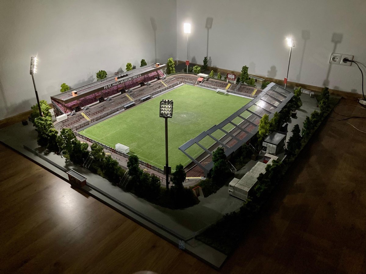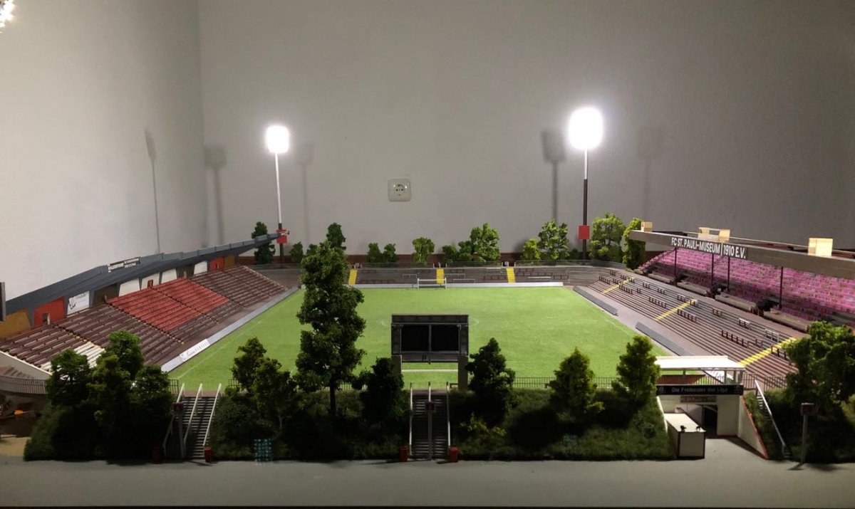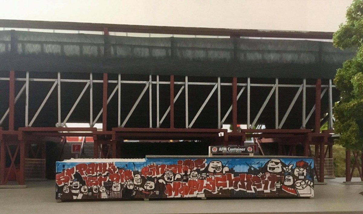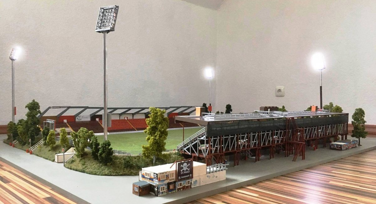 Hier entsteht nach und nach das Modell vom alten Millerntor – Stadion.