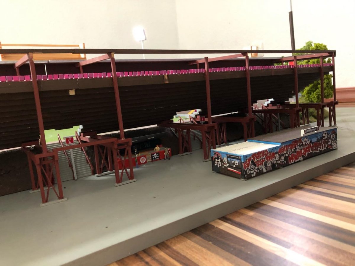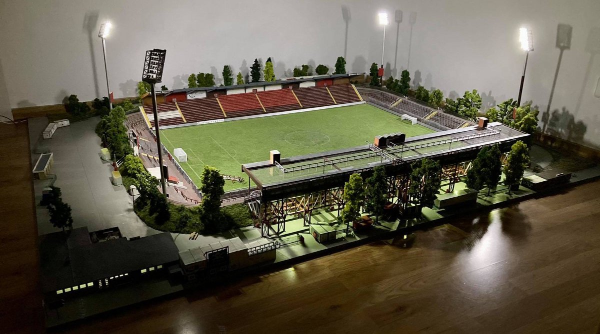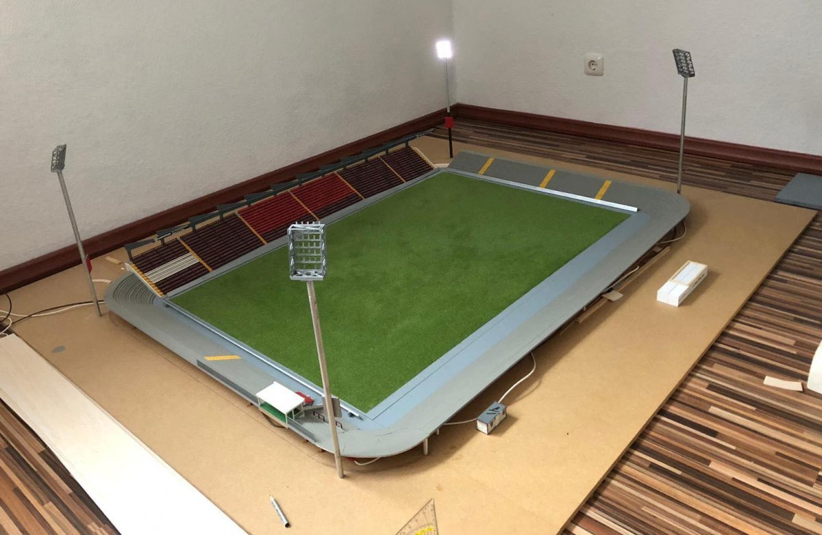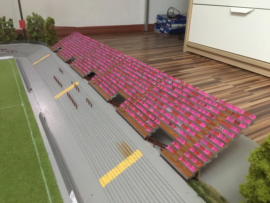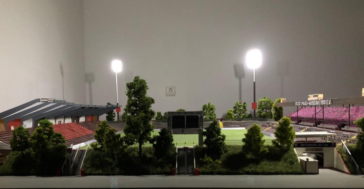 Hier entsteht nach und nach das Modell vom alten Millerntor – Stadion.
