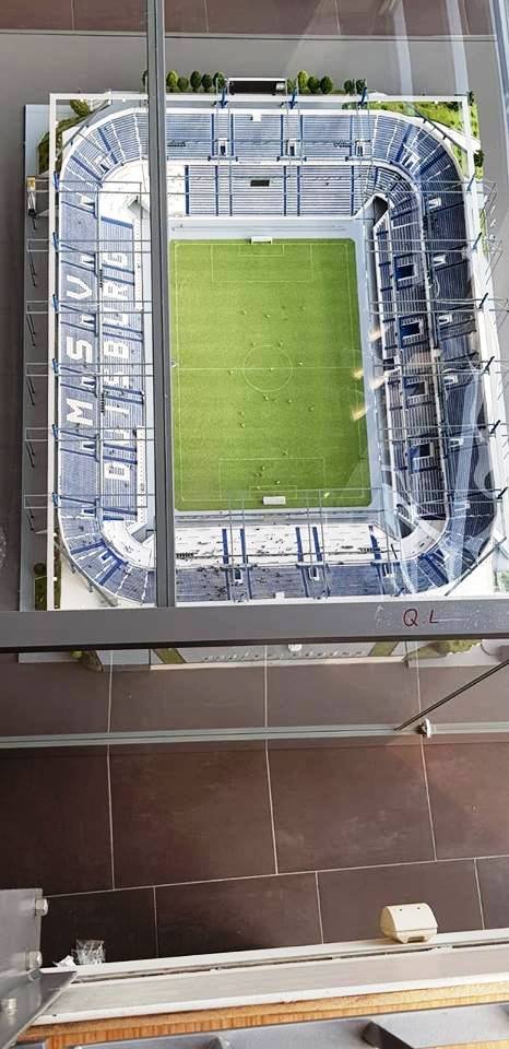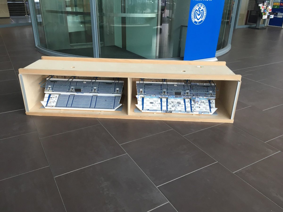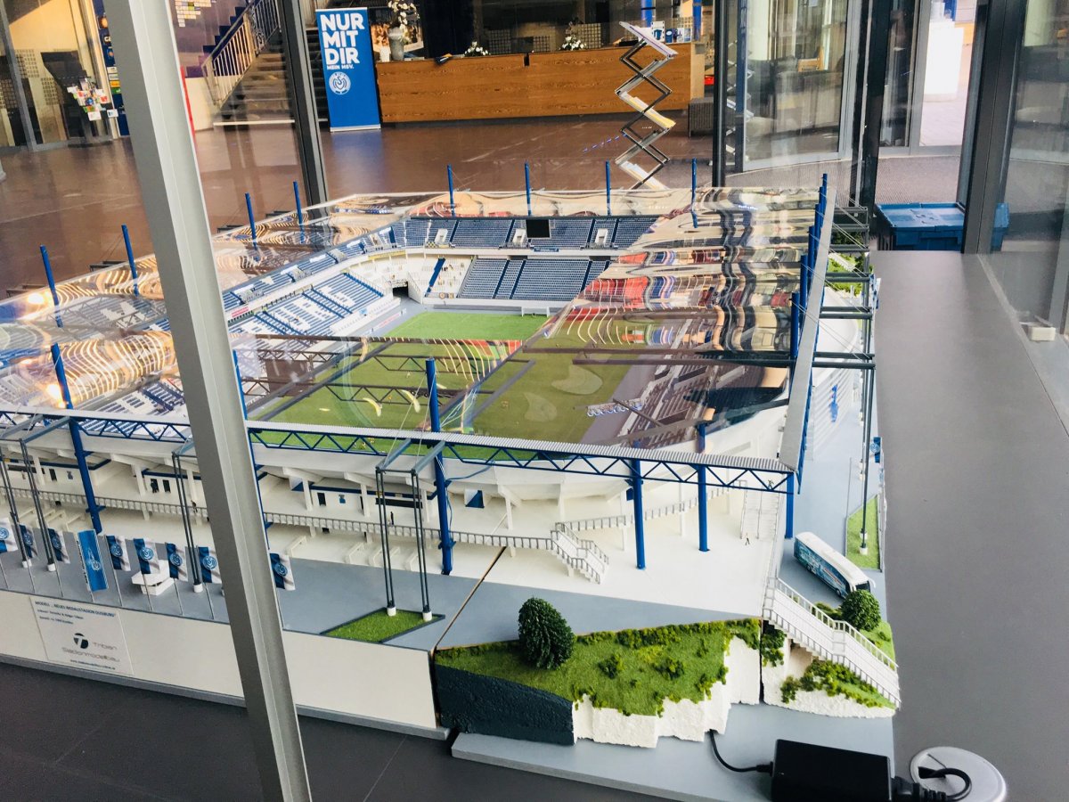 Seit dem 25.07.2018 befindet sich das Modell der MSV – Arena zwecks Dauerausstellung im Haupteingangsfoyer der echten MSV – Arena.